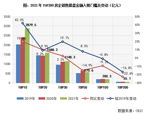 02 門檻:TOP30房企保持規(guī)模優(yōu)勢(shì) 百?gòu)?qiáng)門檻200.3億元