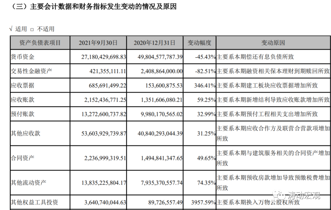 今年9月底,陽光城的其他權(quán)益工具投資由8972.66萬元大幅增至36.41億元(同比增幅高達(dá)3957.59%),實(shí)際上正是由于換入萬物云股權(quán)所致。其他權(quán)益工具投資由0.90億元增至36.41億元,意味著陽光城持有萬物云4.80%股權(quán)的對價(jià)應(yīng)為35.50億元左右,如果沒有現(xiàn)金補(bǔ)償,則相當(dāng)于萬物云的市值要達(dá)到740億元,這顯然是一個(gè)龐大的數(shù)字,畢竟目前市值超過千億的物業(yè)公司只有碧桂園一家。不過從萬物云的創(chuàng)收能力來看,其市值后續(xù)突破千億可能并不是奢望。而我們更為好奇的是,這筆現(xiàn)金補(bǔ)償大概是多少?是否能夠用來緩解陽光城目前陷入的困境?這還有待繼續(xù)觀察。
