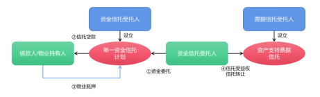 1、交易結(jié)構(gòu)1.0版——“資金信托計(jì)劃+票據(jù)信托計(jì)劃”模式