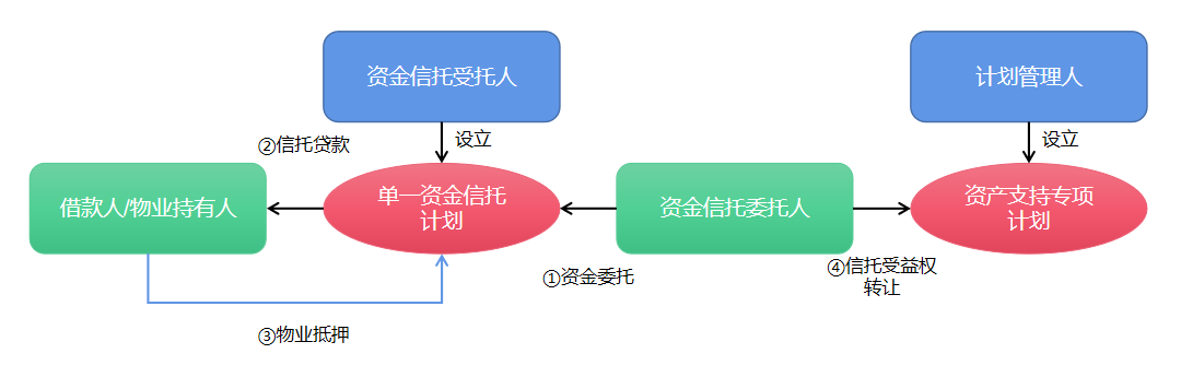 承租人→物業(yè)持有人收款賬戶→監(jiān)管賬戶→資金信托賬戶→財(cái)產(chǎn)權(quán)信托賬戶→上清所