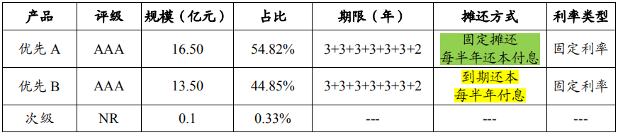 以“北京首都開(kāi)發(fā)股份有限公司 2020 年度第一期資產(chǎn)支持票據(jù)”為例,根據(jù)募集說(shuō)明書(shū)披露,優(yōu)先級(jí)證券按照攤還方式不同分為優(yōu)先A和優(yōu)先B,優(yōu)先A每半年還本付息,優(yōu)先B每半年付息,到期還本。