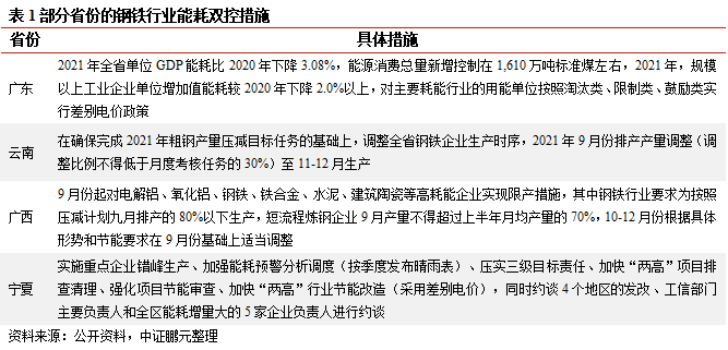 2021年2月7日,國家發(fā)改委發(fā)布了各地區(qū)2019年能耗消費總量和強度雙控目標考核結(jié)果,公告通報批評了內(nèi)蒙古自治區(qū)(唯一)未完成雙控任務(wù)。3月9日,內(nèi)蒙古印發(fā)《關(guān)于確保完成“十四五”能耗雙控目標任務(wù)若干保障措施》,明確提出先行確定2021年全區(qū)單位地區(qū)生產(chǎn)總值能耗降低3%,能耗增量控制在500萬噸標準煤以內(nèi)的目標,能耗總量增速控制在1.9%左右,單位工業(yè)增加值能耗(等價值)下降4%以上。同時提出要控制對部分高耗能行業(yè)實行能耗總量控制、提高準入標準、加快淘汰落后產(chǎn)能、加快節(jié)能技術(shù)改造步伐、實行綠色電價等多種舉措。在一攬子雙控措施下,內(nèi)蒙古2021年上半年能耗雙控績效考核為雙綠燈,而這也將給其他省份帶來了較大的參考意義,限產(chǎn)是短期內(nèi)達標最有效的辦法。