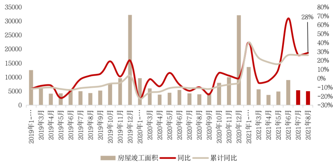 8月全國房企房屋竣工面積4957萬平方米,同比增速和累計同比增速雙雙增長至26%和28%。一方面“交付大年”下房企具備剛性壓力,另一方面提速已售項目竣工可盤活預(yù)售資金監(jiān)管賬戶內(nèi)資金。因此房屋竣工面積持續(xù)發(fā)力,支撐8月整體投資規(guī)模環(huán)比小增。