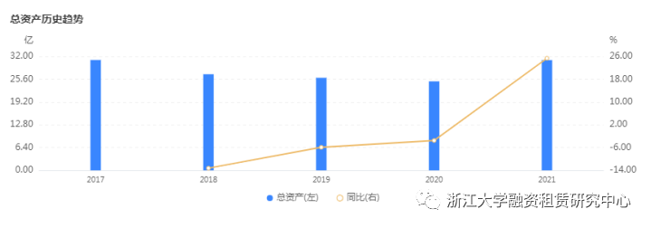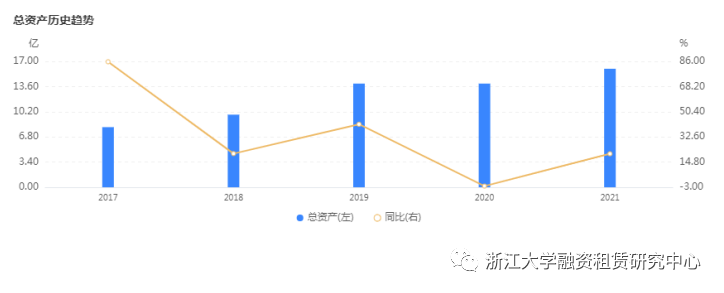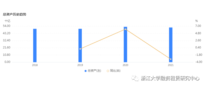 截止到2021年底,中航租賃營業(yè)收入為103.03億元,同比增長1.75%;凈利潤19.90億元,同比增長0.82%;總資產為1675.84億元,同比增長5.56%,凈資產為為262.70億元,同比增長5.03%。