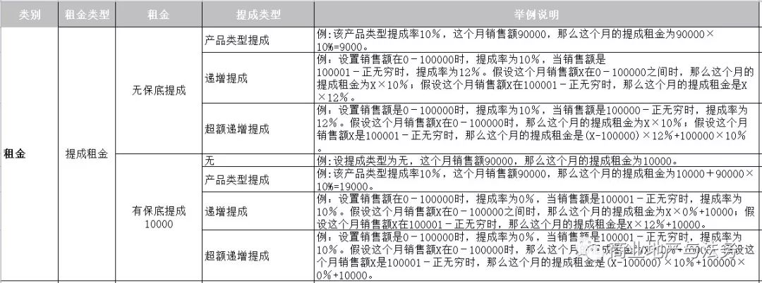 (二)提成租金(也稱(chēng)為:扣率租金、扣點(diǎn)租金或抽成租金)