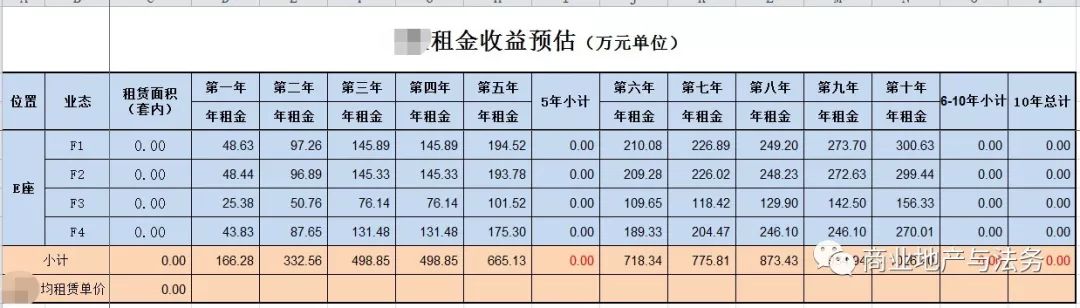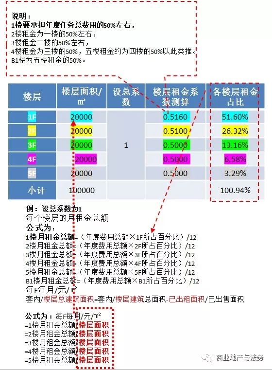 然后設(shè)定樓層租金系數(shù),測(cè)算樓層租金占百分比: