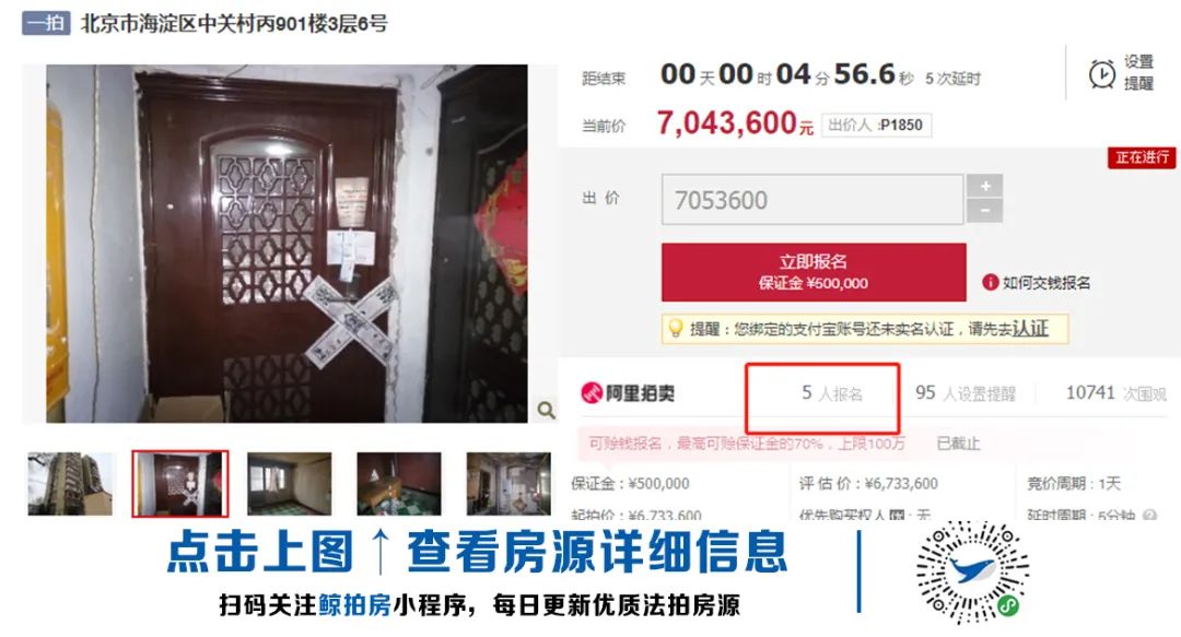 起拍價(jià)的提升并沒有熄滅人們對(duì)這套海淀優(yōu)質(zhì)房源的熱情,仍有5人報(bào)名展開激烈角逐。