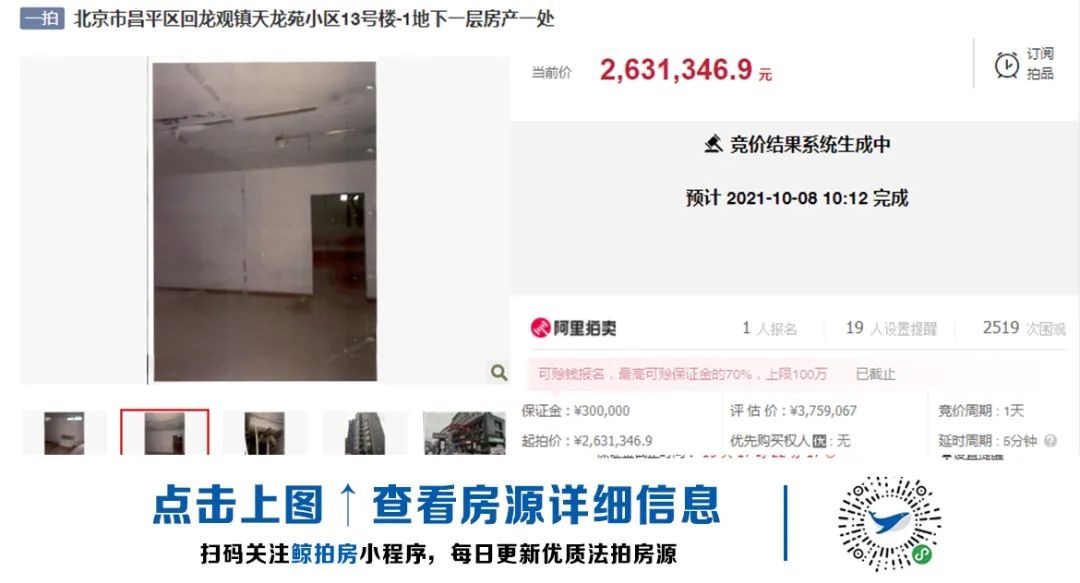 昌平回龍觀的一處地下室,經(jīng)歷了一輪拍出、悔拍、再次上拍、再次拍出,今日又以起拍價(jià)格263萬(wàn)成交,與上次拍成價(jià)格相同。