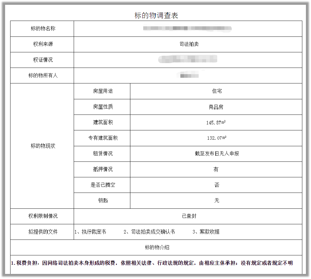一般公告中常見的標(biāo)的物調(diào)查表,不翼而飛,而標(biāo)的物調(diào)查表是非常重要的記載房源信息載體,通常會(huì)公示房屋性質(zhì)、租賃情況、產(chǎn)權(quán)證號(hào)、被執(zhí)行人相關(guān)信息等內(nèi)容,這些是輔助競(jìng)買人作出競(jìng)買決策的重要信息,等不要提房子沒有評(píng)估報(bào)告了。