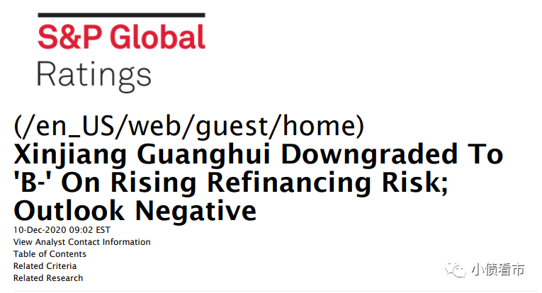 12月10日,標(biāo)普報(bào)告稱,將新疆廣匯實(shí)業(yè)投資(集團(tuán))有限責(zé)任公司(以下簡稱“廣匯集團(tuán)”)的長期發(fā)行人信用評級從“B”下調(diào)至“B-”;同時將其高級無抵押票據(jù)的長期發(fā)行評級從“B-”下調(diào)至“CCC+”。