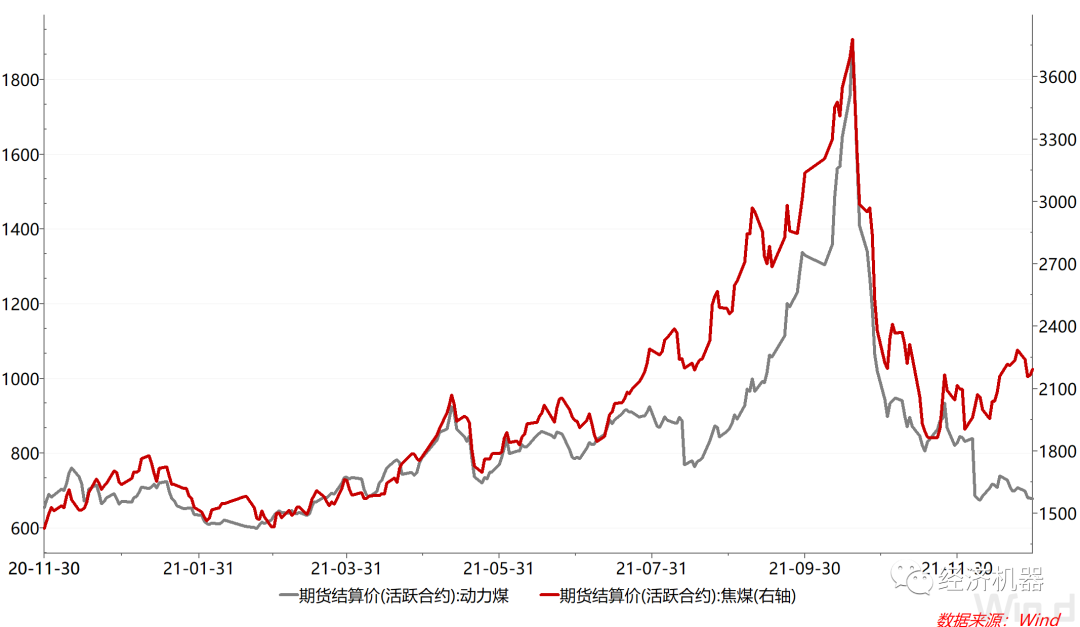 圖4 動(dòng)力煤與焦煤價(jià)格走勢(shì)