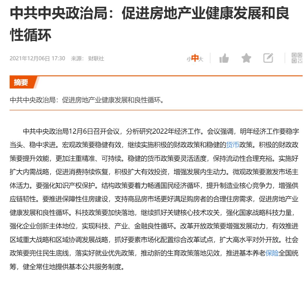 12月6日政治局會議召開。個人認為,此次政治局會議關于地產(chǎn)的表態(tài)是超預期的。