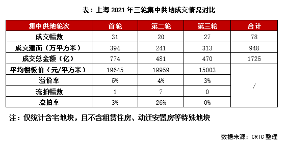 經過4天的連續出讓,上海2021年集中供地工作落下帷幕,三輪集中供地中上海共出讓了78幅含宅地塊(不含安置房等特殊用地)。