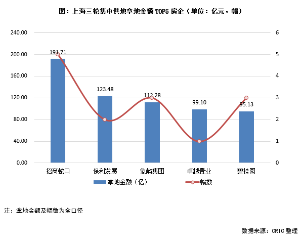 此外,上海本土房企大華集團在今年集中供地中也拿下4宗地塊,進一步鞏固了自身在上海的土儲,但是地塊的體量較小,總金額僅有27億元。