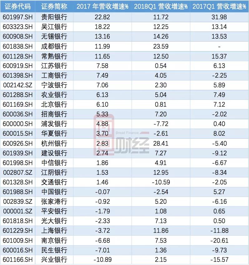 盡管市場趨于悲觀,但實際上2018年一季度,一些大中型銀行經(jīng)營情況是有改善的,一個明顯的信號就是營收普遍恢復增長。