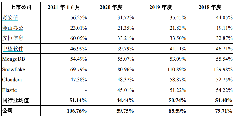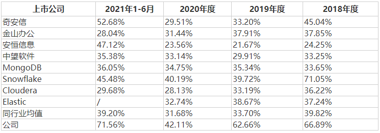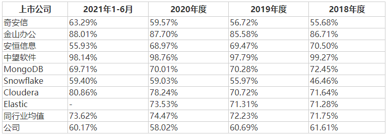根據(jù)招股書(shū),星環(huán)科技的毛利率水平低于同行業(yè)可比上市公司平均水平,但保持相對(duì)穩(wěn)定,在報(bào)告期基本保持在60%上下,變動(dòng)不大。