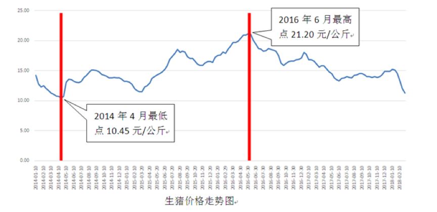 行業(yè)普遍的看法:本輪周期起點是2014年4月的10.45元/公斤,最高點為2016年6月的21.20元/公斤,之后價格震蕩下行,2018年3月份,價格最低下降至11.3元/公斤。