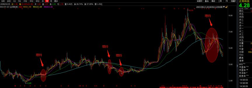 比如:2009年獨立董事章衛(wèi)東在在股價(前復權(quán))低位少量增持,2012年11-12月大股東正邦集團增持180萬股,參考市值1248.61萬元;2013年3-6月正邦集團再次累計增持195.07萬股,累計參考市值1268.81萬元。