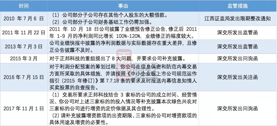 從2010年至2017年,正邦科技幾乎年年都能收到來自監(jiān)管部門的“問候”,以下為根據(jù)公開信息整理的相關(guān)事項: