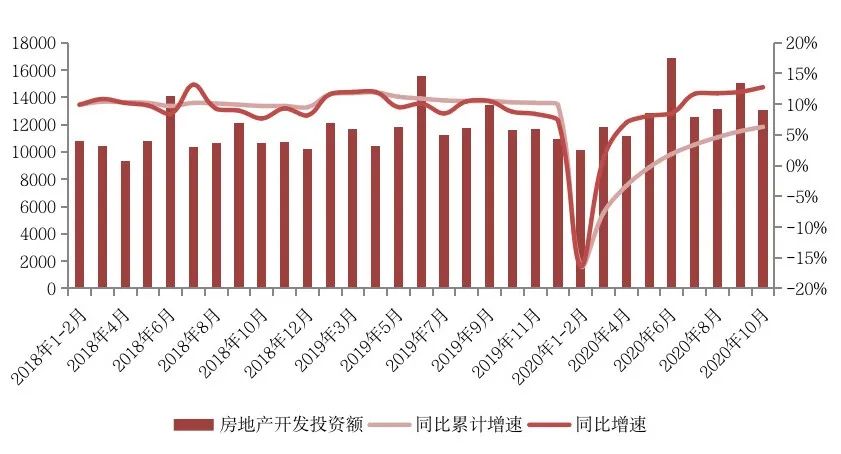開(kāi)發(fā)投資方面,2020年1-10月份,全國(guó)房地產(chǎn)開(kāi)發(fā)投資116556億元,同比增長(zhǎng)6.3%,增速比1-9月份提高0.7個(gè)百分點(diǎn)。