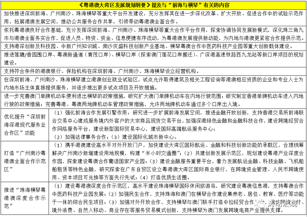 4、《方案》明確橫澳合作區(qū)將聚焦科技研發(fā)和高端制造、中醫(yī)藥、文旅會(huì)展商貿(mào)、現(xiàn)代金融等四大類產(chǎn)業(yè),這意味著橫澳合作區(qū)的新增作業(yè)范圍則主要體現(xiàn)為合作區(qū)內(nèi)的企業(yè)境內(nèi)外融資的自由度與便利度大幅提升,同時(shí)橫澳合作區(qū)的政策支持力度和海南自貿(mào)港基本相當(dāng)。