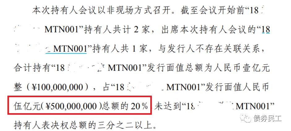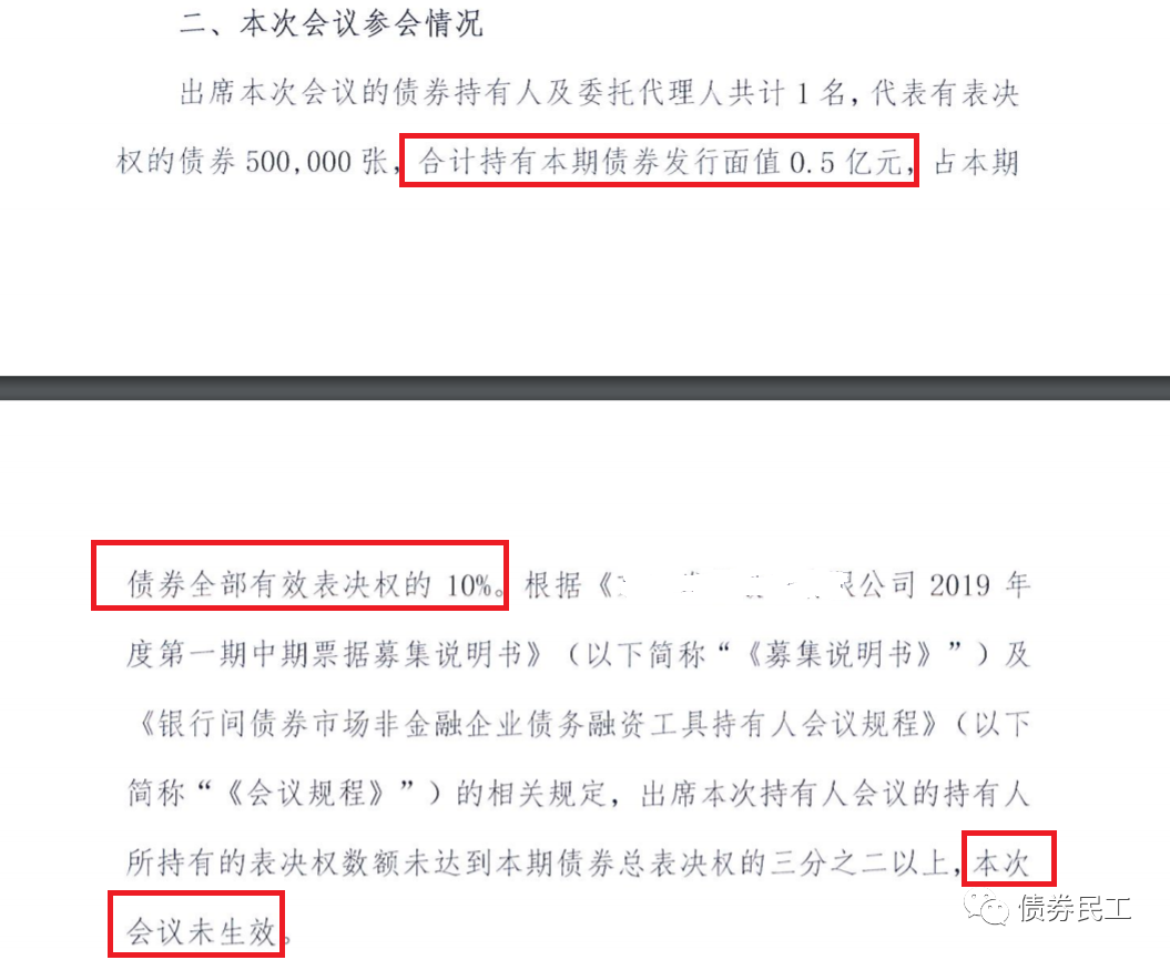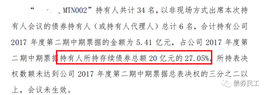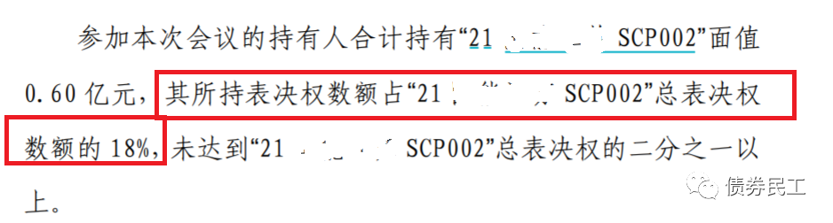 持有人會議未生效的主要原因是參會的持有人數(shù)不夠,注意是參會人數(shù)未達到約定的標準,不是投反對票的人數(shù)。但是也真沒想到,部分債券持有人會議的參會比例會是如此之低。讓我們一起來看幾個近期未生效的債券持有人會議案例: