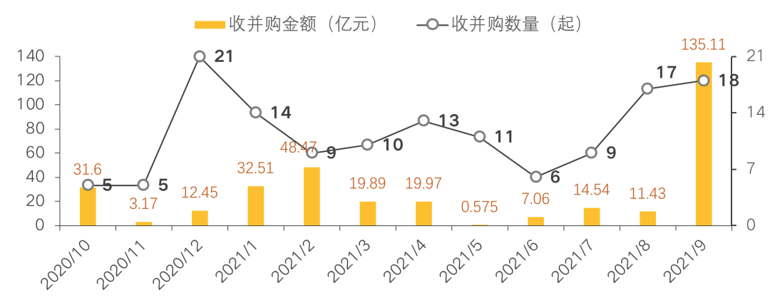 在資本市場開始出現(xiàn)回調的過程中,市場頻發(fā)企業(yè)大宗收并購事件。根據(jù)克而瑞物管&中物研協(xié)監(jiān)測,本月上市物業(yè)服務企業(yè)對外公告收并購事項新增18起,交易金額135.11億元。