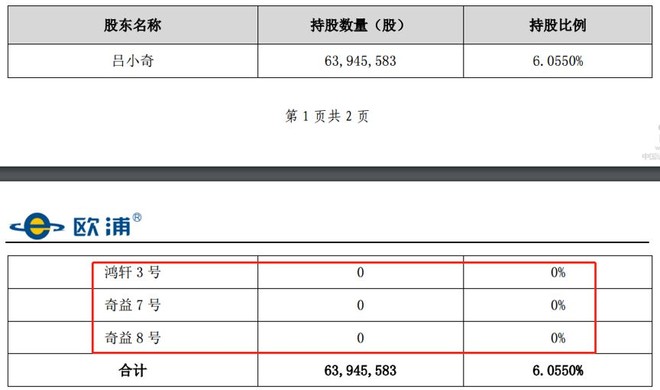 隨后,三個(gè)信托計(jì)劃兩次被信托公司強(qiáng)制平倉(cāng),繼續(xù)被動(dòng)減持。到2月底,三個(gè)信托計(jì)劃已經(jīng)被清倉(cāng),持股數(shù)量降到零。但當(dāng)時(shí)呂小奇本人仍持有歐浦智網(wǎng)6.055%股份。