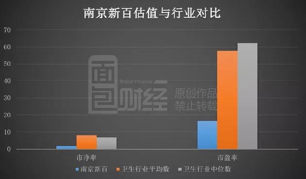 截止2018年7月4日收盤(pán),南京新百總市值146億,市凈率1.8倍,市盈率16.4倍。而統(tǒng)計(jì)數(shù)據(jù)顯示,當(dāng)前A股醫(yī)療衛(wèi)生行業(yè)公司,市凈率中位數(shù)為6.96倍,平均數(shù)為8.1倍;市盈率中位數(shù)為62.4倍,平均數(shù)為57.8倍。