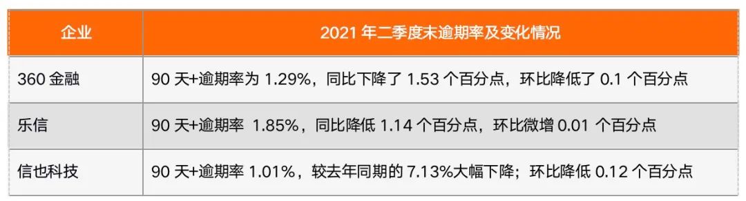 五、以90天+逾期率衡量,3家平臺的資產(chǎn)質(zhì)量環(huán)比改善或保持穩(wěn)定