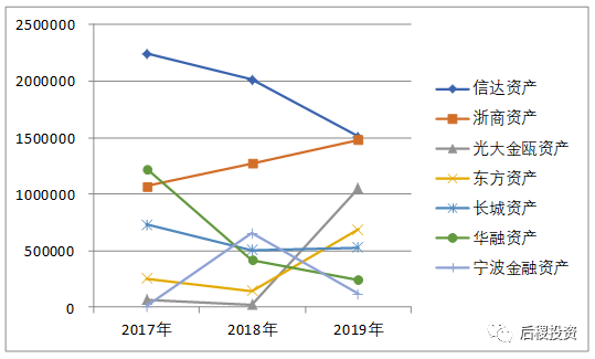 從整體上看,18年持牌AMC受讓銀行資產(chǎn)體量最小;從個體上看,信達(dá)資產(chǎn)、華融資產(chǎn)逐年減少 ;浙商資產(chǎn)、東方資產(chǎn)、光大金甌資產(chǎn)逐年增加,尤其光大金甌資產(chǎn)和東方資產(chǎn)19年增加最顯著。