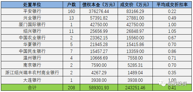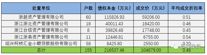 另未透露債權(quán)金額成交明細(xì)如下: