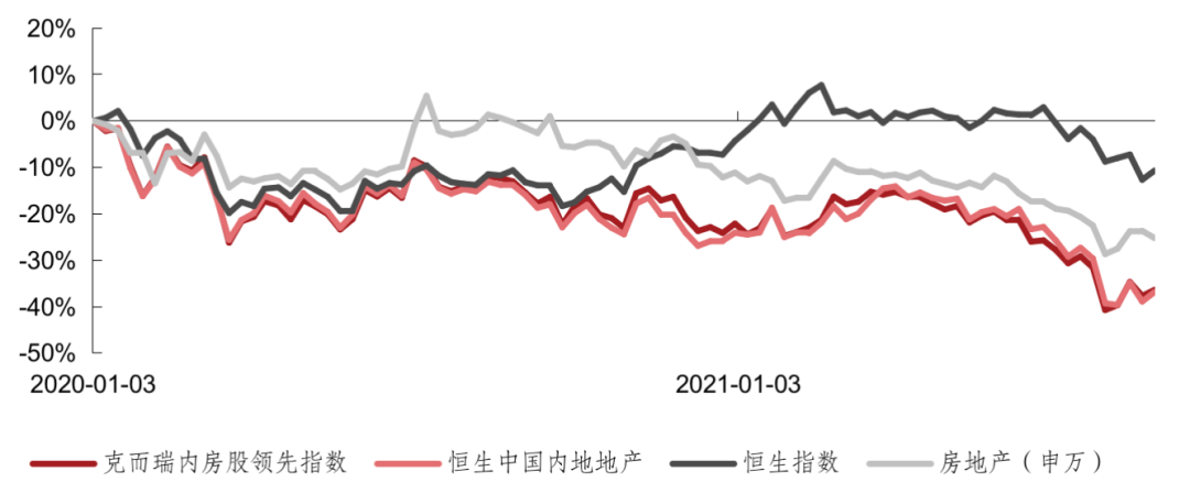 具體數(shù)據(jù)來(lái)看,2020年1月1日至今,克而瑞內(nèi)房股領(lǐng)先指數(shù)跌幅36.4%,同期恒生中國(guó)內(nèi)地地產(chǎn)指數(shù)跌幅36.9%,恒生指數(shù)跌幅10.7%,房地產(chǎn)(申萬(wàn))板塊跌幅25.2%。