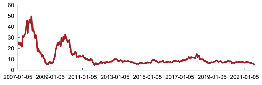 注:1)恒生中國(guó)內(nèi)地地產(chǎn)指數(shù)的推出主要是為了反映前10只市值最大、流通性最高,在香港上市但主要營(yíng)業(yè)收入來(lái)自中國(guó)內(nèi)地的房地產(chǎn)股票表現(xiàn)。當(dāng)前成分股共10只,分別為:中國(guó)金茂、中國(guó)海外發(fā)展、世茂集團(tuán)、龍湖集團(tuán)、華潤(rùn)置地、龍光集團(tuán)、碧桂園、中國(guó)恒大、碧桂園服務(wù)、融創(chuàng)中國(guó)