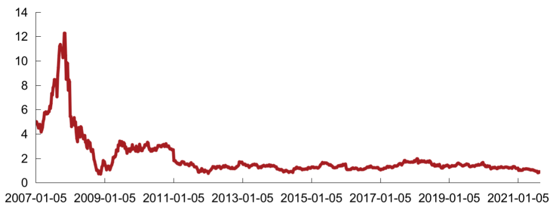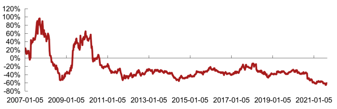 3)相對(duì)PB=(克而瑞內(nèi)房股領(lǐng)先指數(shù)成分股整體PB/香港地產(chǎn)股大樣本整體PB-1)*100%