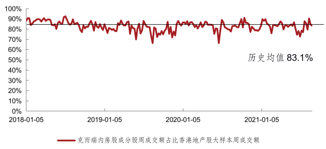 備注:相對(duì)PE=(克而瑞內(nèi)房股領(lǐng)先指數(shù)成分股整體PE/恒生指數(shù)成分股整體PE-1)*100%