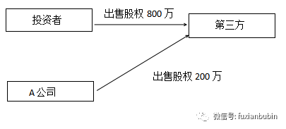 如,假設(shè)投資者投資A公司,若此時投資者占有的股份為20%,A公司的其他股東占有的股份為80%,此時若A公司擬出售1000萬股的股權(quán)給第三方,其交易結(jié)構(gòu)為: