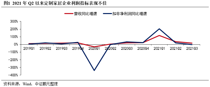2021年下半年以來,藍(lán)光發(fā)展、陽光100、恒大集團(tuán)、花樣年等房企先后爆出流動性風(fēng)險事件,10月份地產(chǎn)美元債大跌,多個房企主體評級被下調(diào),隨后江山歐派、皮阿諾等定制家居企業(yè)被爆持有的恒大商票逾期,定制家居企業(yè)一時被負(fù)面信息包圍。再觀其財務(wù)數(shù)據(jù),在地產(chǎn)政策收緊導(dǎo)致行業(yè)景氣度下降及原材料漲價等因素影響下,定制家居企業(yè)出現(xiàn)了明顯的“增收不增利”特征。