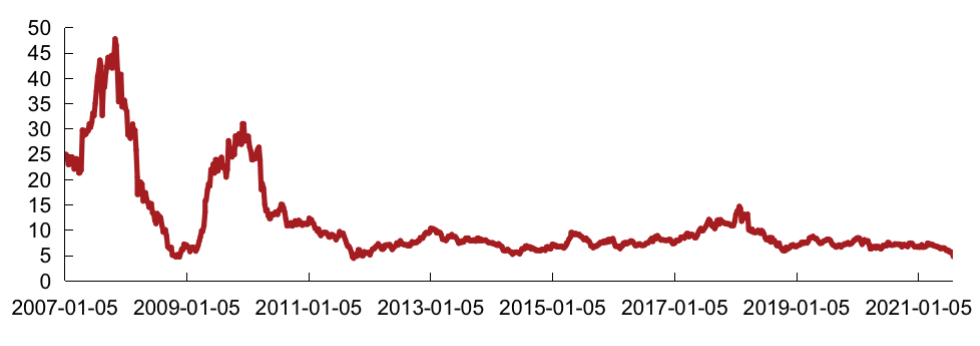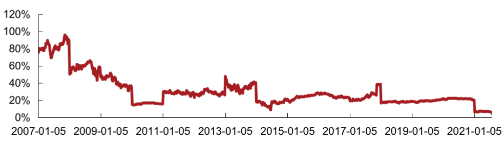 備注:1)恒生中國(guó)內(nèi)地地產(chǎn)指數(shù)的推出主要是為了反映前10只市值最大、流通性最高,在香港上市但主要營(yíng)業(yè)收入來(lái)自中國(guó)內(nèi)地的房地產(chǎn)股票表現(xiàn)。當(dāng)前成分股共10只,分別為:中國(guó)金茂、中國(guó)海外發(fā)展、世茂集團(tuán)、龍湖集團(tuán)、華潤(rùn)置地、龍光集團(tuán)、碧桂園、中國(guó)恒大、碧桂園服務(wù)、融創(chuàng)中國(guó)