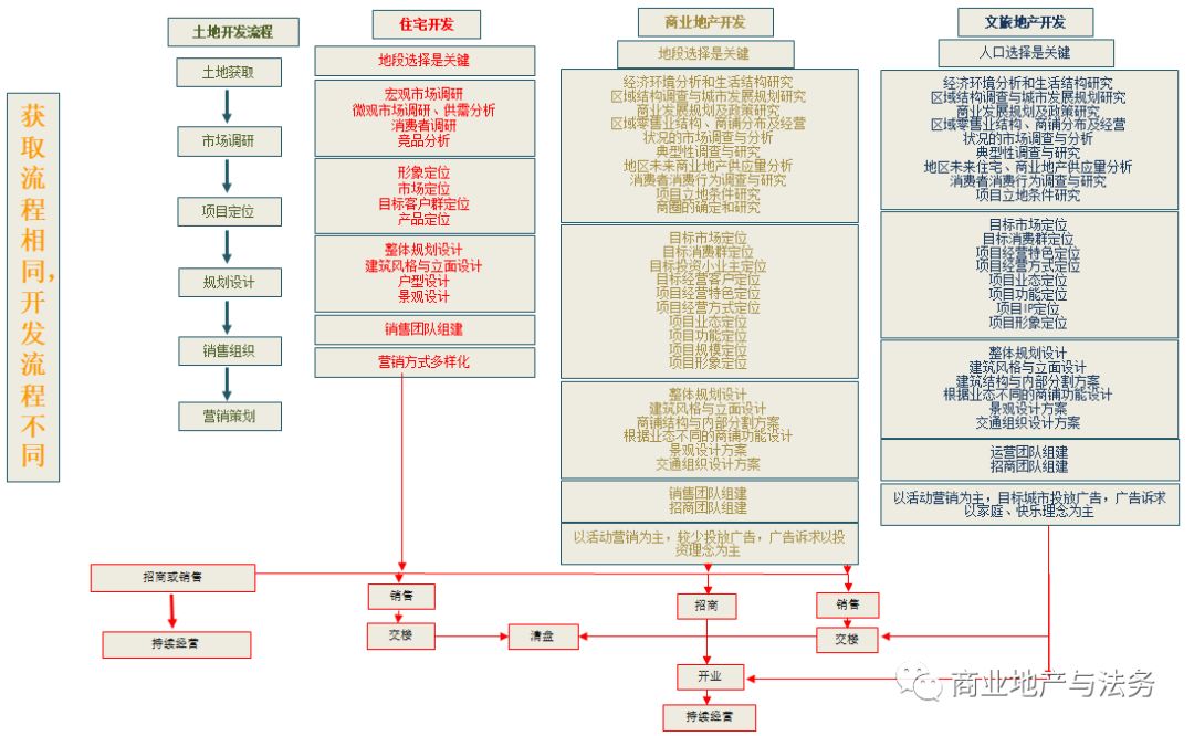 (五)商業(yè)地產(chǎn)、文旅開發(fā)比住宅開發(fā)多出開業(yè)、運(yùn)營、管理三個(gè)環(huán)節(jié)。