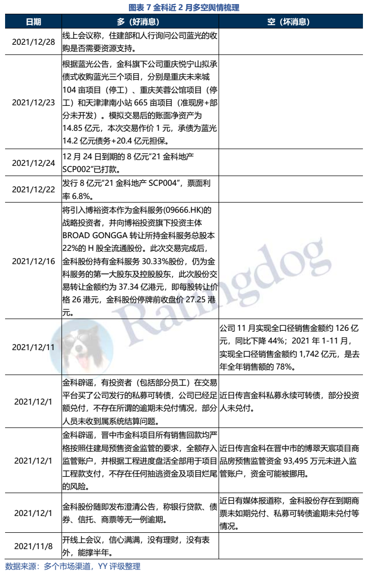 禹洲最臨近的到期公開債務分別是2022年1月的5.79億美元債+4月35億境內債回售+3億供應鏈ABS,近兩個月公司主要的輿情均與再融資相關: