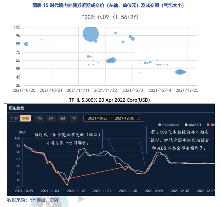 時代中國12月7日對年內所有到期債券及ABS備償完畢,美元債價格對此產生積極反應,但隨后境內外債券又出現下跌,市場猜測為公募機構換倉。考慮到公司舊改業(yè)務涉及較多表外融資,透明度較低,不排除存在非公開的非標融資輿情的可能。