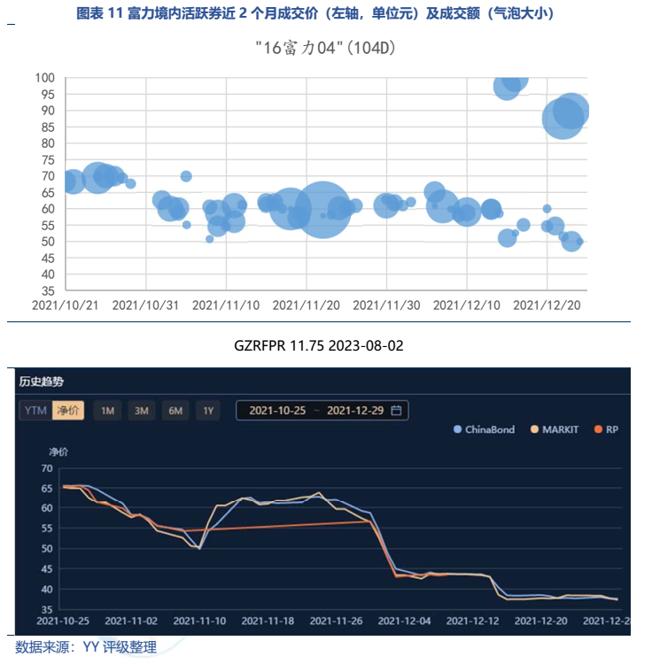 近兩月富力境內活躍券“16富力04”價格從70元檔跌至50元檔,而境外10只存續(xù)債中有8只價格在30元檔,已反應展期兌付的不確定性。
