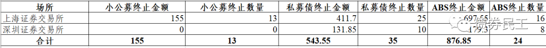 從私募債產(chǎn)品來看,單只債券最大終止金額為30億元,為蘭州建設投資(控股)集團有限公司2021年非公開發(fā)行公司債券和重慶邁瑞城市建設投資有限責任公司2021年面向?qū)I(yè)投資者非公開發(fā)行短期公司債券。最小終止金額為4億元,為孝感市高創(chuàng)投資有限公司2021年面向?qū)I(yè)投資者非公開發(fā)行項目收益專項公司債券。