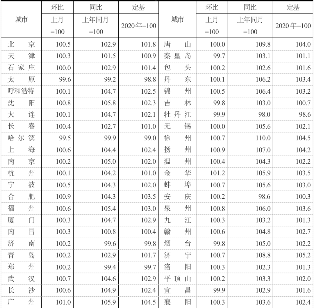 表1:2021年1月70個(gè)大中城市新建商品住宅銷售價(jià)格指數(shù)