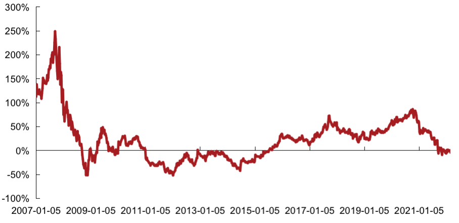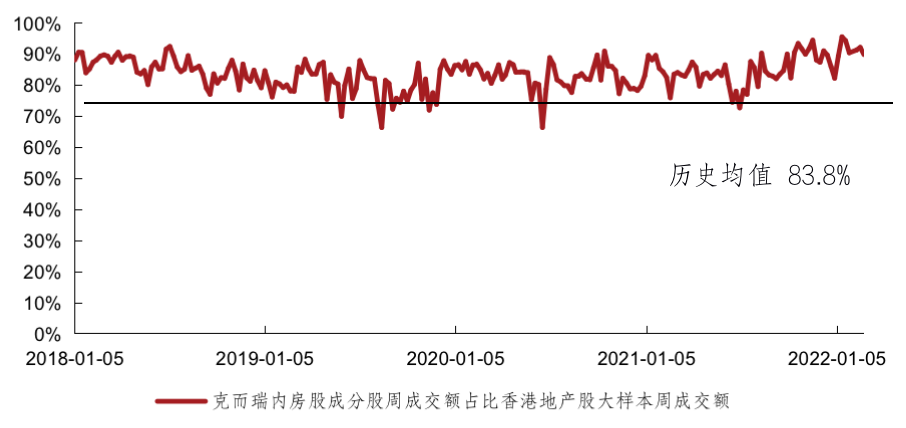 備注:相對(duì)PE=(克而瑞內(nèi)房股領(lǐng)先指數(shù)成分股整體PE/恒生指數(shù)成分股整體PE-1)*100%