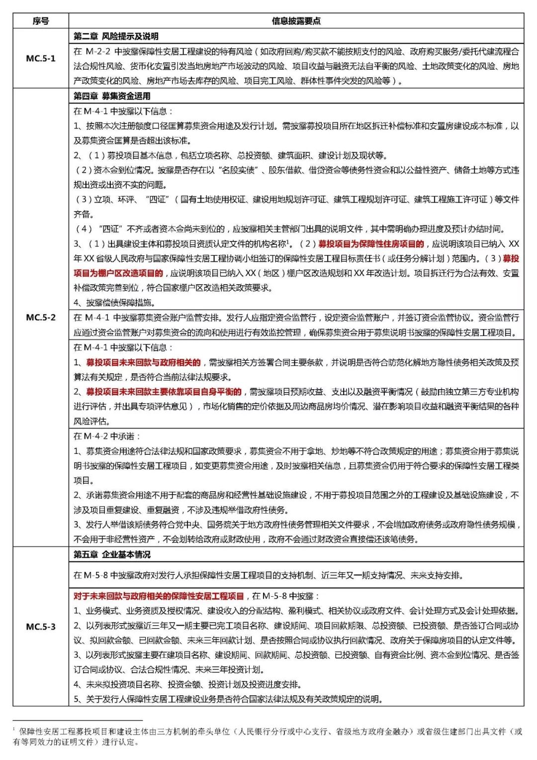 4、募集資金用于貨幣化安置的保障房棚改項(xiàng)目,需披露募投項(xiàng)目所在地區(qū)是否存在商品住房庫(kù)存不足、房?jī)r(jià)上漲壓力較大的情況,是否符合當(dāng)前法律法規(guī)及相關(guān)政策要求,同時(shí)需披露資金監(jiān)管協(xié)議相關(guān)操作條款;由發(fā)行人項(xiàng)目所在地政府住建部門就當(dāng)?shù)厣唐纷》繋?kù)存、房?jī)r(jià)上漲等情況出具專項(xiàng)說明,具體說明該區(qū)域是否符合貨幣化安置的條件;主承銷商對(duì)上述事項(xiàng)出具專項(xiàng)盡調(diào)報(bào)告。
