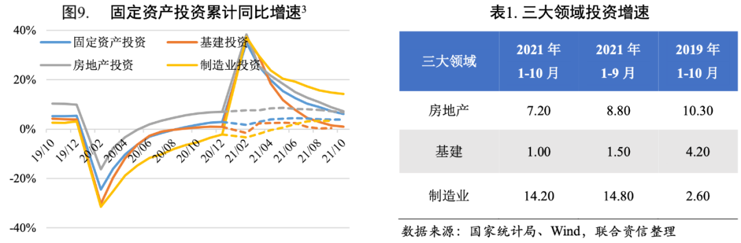 10月22日,財(cái)政部相關(guān)負(fù)責(zé)人在財(cái)政收支情況新聞發(fā)布會(huì)上表示,2021年新增專項(xiàng)債券額度盡量在11月底前發(fā)行完畢。聯(lián)合資信認(rèn)為,11月專項(xiàng)債發(fā)行加速,為“今年底明年初形成實(shí)物工作量”提供資金支撐,基建投資會(huì)有所回升,但受制于地方政府債務(wù)管理和項(xiàng)目審批趨嚴(yán)等因素制約,預(yù)計(jì)上升幅度有限。