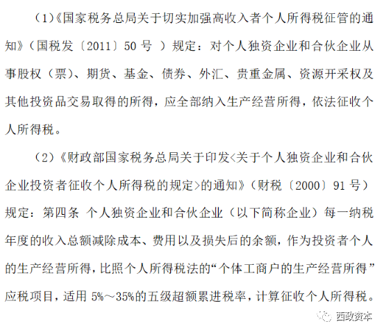 一直以來,合伙企業(yè)的合伙人是個人投資者的情況下,合伙企業(yè)對外轉讓其持有的項目公司股權時,對個人投資者應比照“個體工商戶的生產經營所得適用5%~35%的五級超額累進稅率”,還是按“財產轉讓所得適用20%的稅率”,全國各地其實存在很大的差異。關于地區(qū)性差異的產生原因,筆者認為主要是當前合伙企業(yè)個人投資者的所得稅在法規(guī)政策的規(guī)定方面相對模糊,且大多以國稅總局規(guī)范性文件為主,效力層次相對較低,由此亦導致地方政府擁有較大的自由裁量權。簡單來說,在現行立法背景下,上述情況下適用不同的稅率征收個人所得稅并不違法,也正因如此個人投資者的稅務籌劃就有了很多可操作的空間。