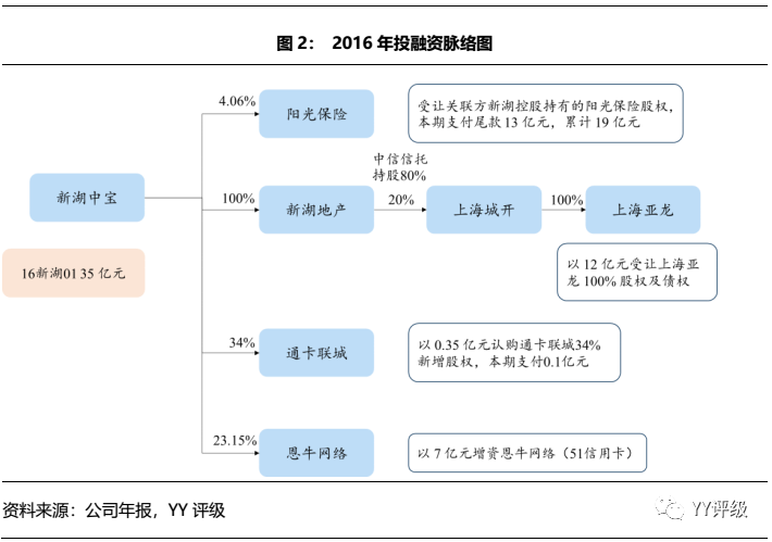 2016年,公司融資端有息債務(wù)增加42億元,包括當(dāng)年新發(fā)行的16新湖0135億元,到期還本付息08新湖債14億元;另外回購股票支付20億元。帶來的資產(chǎn)端變化包括:(1)其他應(yīng)收款增加31億元,主要包括4億元的股權(quán)轉(zhuǎn)讓款和27億元的與新湖地產(chǎn)、上海亞龍、上海新湖天虹的往來款;(2)可供出售金融資產(chǎn)增加18億元,主要是本期完成了對陽光保險的股份收購,支付尾款13億元,累計支付19億元。另外公司還在本期與恩牛網(wǎng)絡(luò)(51信用卡境內(nèi)平臺)、通卡聯(lián)城簽署了投資協(xié)議,因投資尚未完成故未進(jìn)表。總體來看,2016年公司在還舊債、回購股票以及上海舊改項目上的資金需求較大,投資布局方面暫緩。